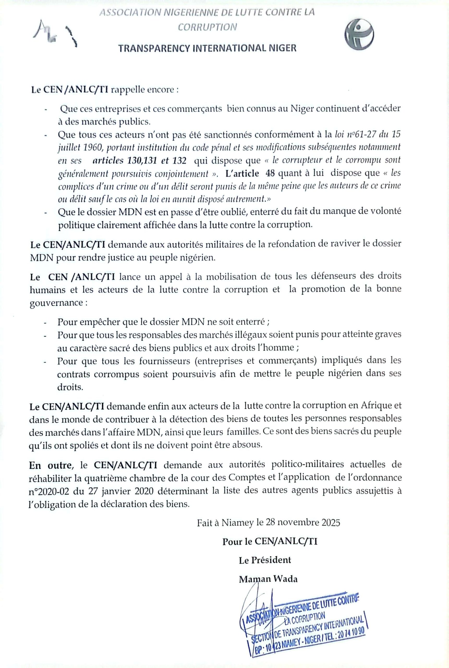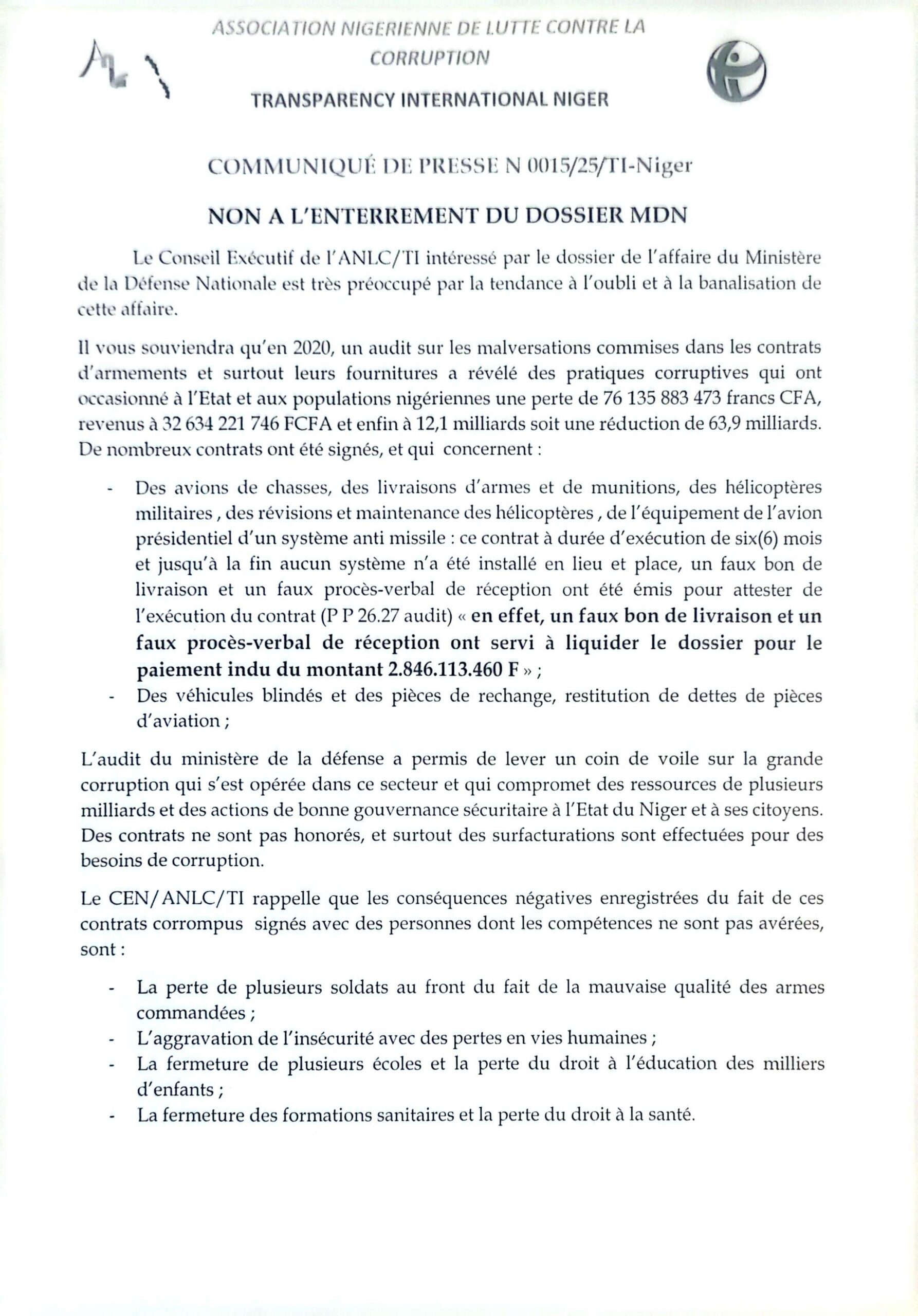 COMMUNIQUÉ DE PRESSE N 0018/25/TI-Niger à l’occasion de la Journée internationale de la Déclaration Universelle des Droits de l’Homme