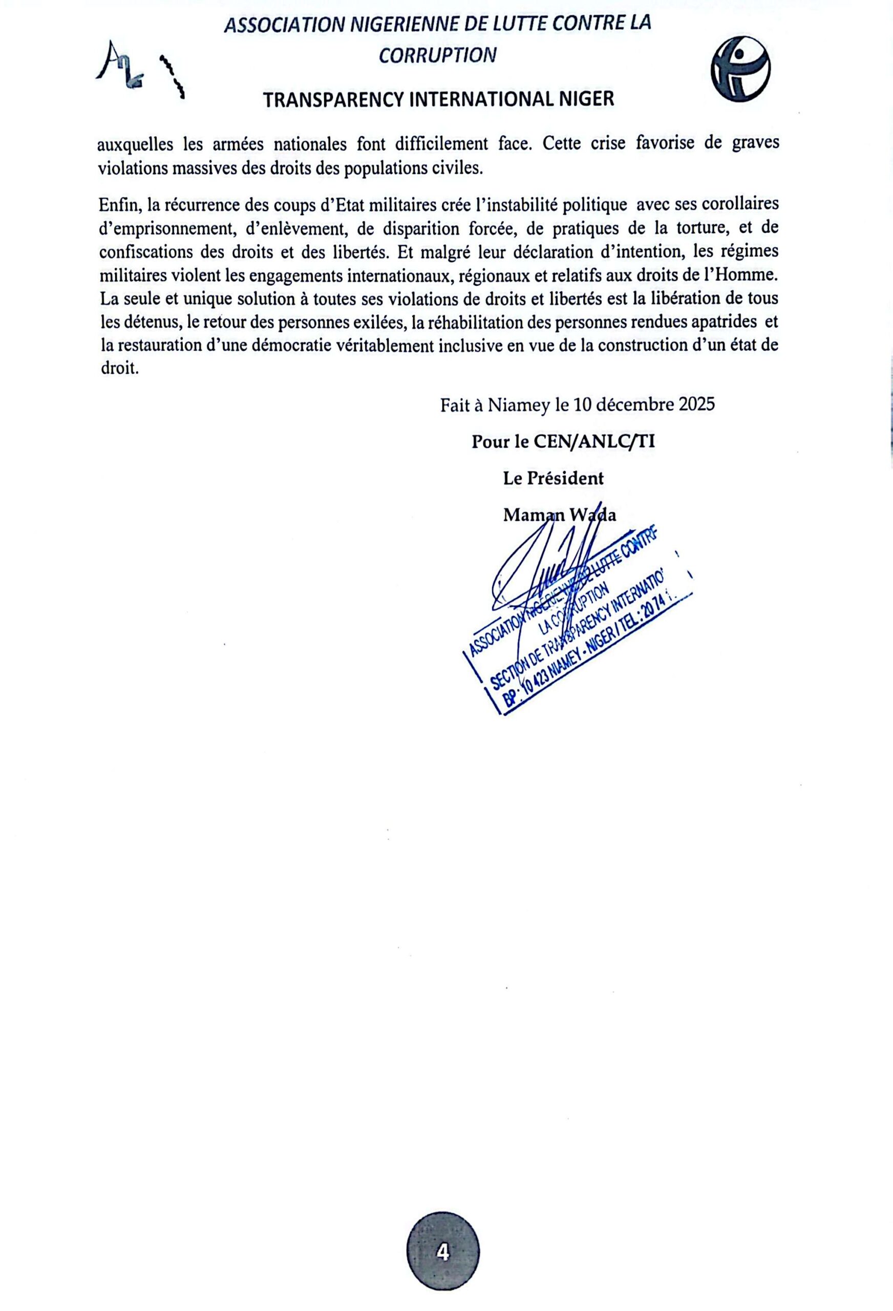Fait à Niamey le 10 décembre 2025